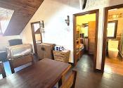 2x spálňa, 1x spoločenská miestnosť (obývačka), počet postelí je 6, plne zariadená kuchyňa spotrebičmi (umývačka riadu, vstavaná varná doska + rúra, chladnička), TV, kúpeľňa s wc, kotol ústredného kúrenia na tuhé palivo (peletky), pekná prestrešená terasa, el. bojler na ohrev vody, 5x parkovacie miesto a mnoho ďalšieho.