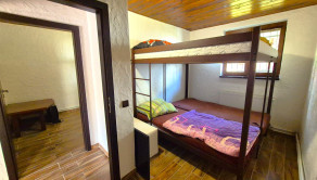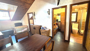 3x spálňa, 1x spoločenská miestnosť (obývačka), počet postelí je 12, malá kuchynská linka, TV, kúpeľňa s wc, el. bojler na ohrev vody, krbové kachle, pekná otvorená slnečná terasa.